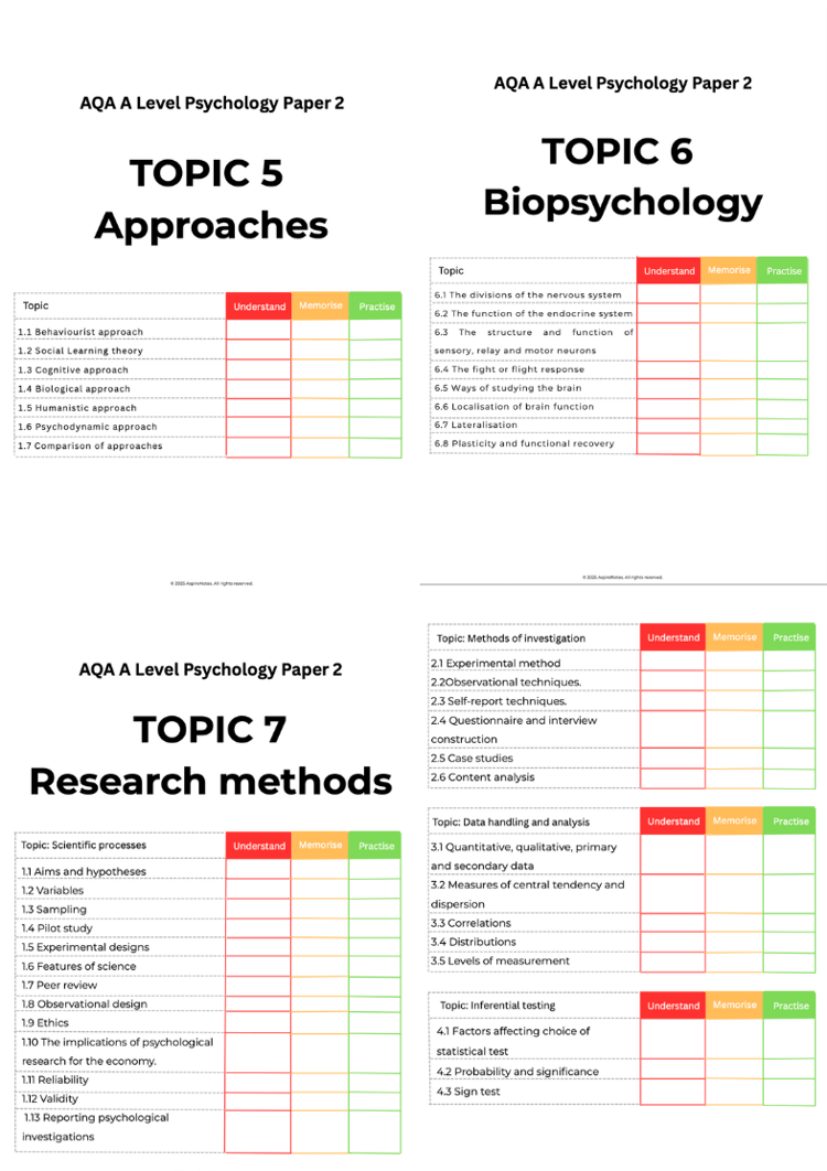 Our resources are created by a student who achieved an A* in the 2025 AQA A-Level Psychology exams, scoring an impressive 242/288 marks. Each set of notes has been carefully reviewed by an experienced teacher with a deep understanding of A-Level Psychology. Every resource is fully aligned with the official AQA specification and refined through detailed analysis of real exam papers, ensuring accuracy, clarity, and maximum exam relevance.