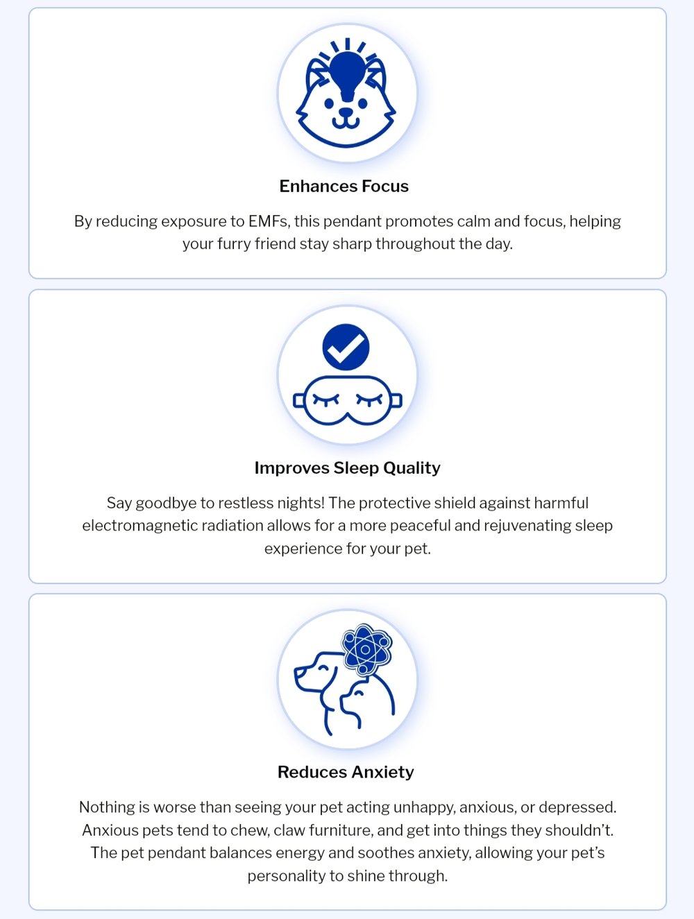 The EMF Defense Pet Pendant has been carefully designed with their well-being in mind. It uses advanced technology to neutralize harmful EMFs surrounding your pets, protecting them against potential health risks associated with prolonged exposure.