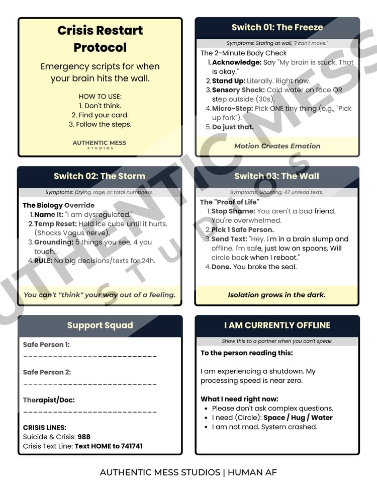 The result? A field manual that doesn't try to "fix" you, but gives you tools designed for how your brain actually operates. No shame. No judgment. Just honest support from someone who gets it.