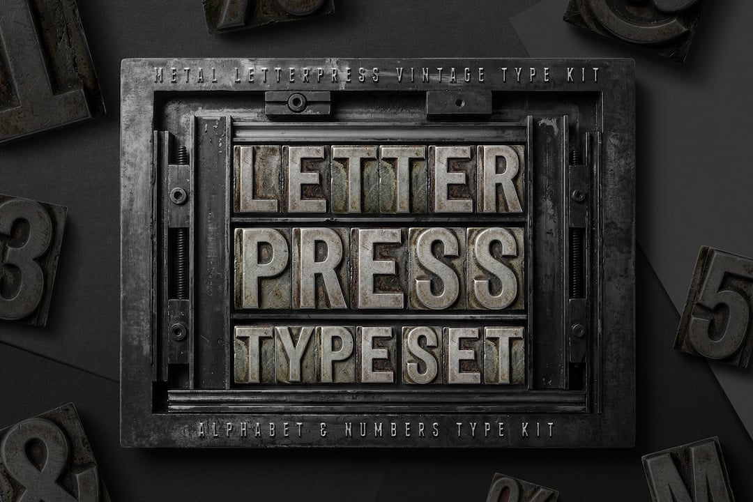 Metal Letterpress Alphabet & Numbers - Vintage Type Set