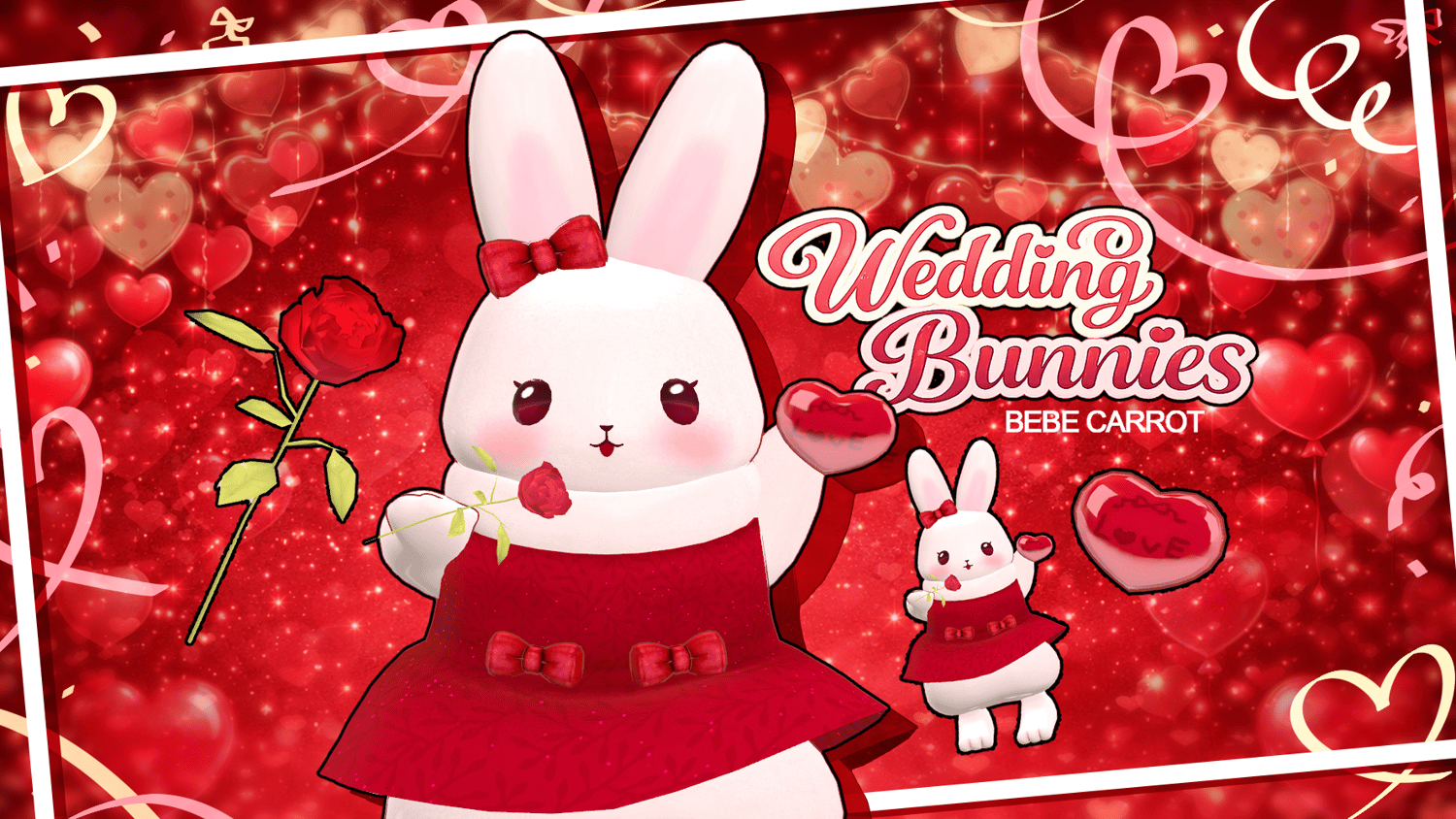 14% OFF Sale (900->777V) for Launch & Valentine’s Day Until Feb 14 ! Wedding Bunnies ! It's Wedding Bunny girlfriend !! She is wearing an adorable mini wedding dress and holding a flower and a heart cushion 💗💗💗 <Feature> 🌹Prop: Flower...