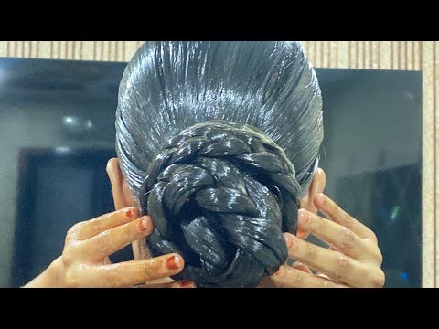 Heavy Oiling 😍 Applying Hair Gel to all over Hair & Sleek Bun