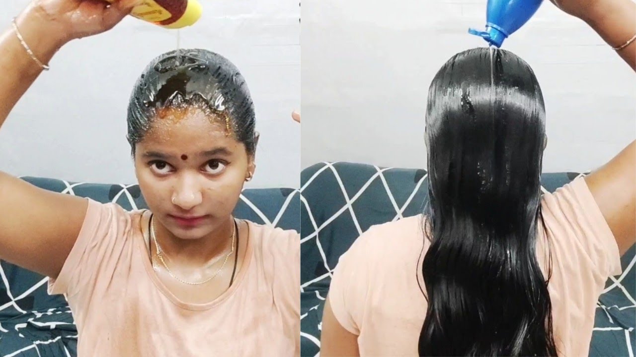Oilinghair with 200ml coconut oil Sleek combing & 4 Hairstyles twinbraids & ponytails