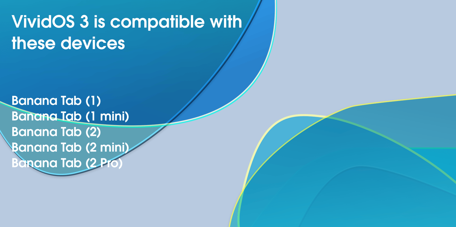 Exciting news for Banana Tab users! We're also releasing the VividOS 3 update to Tab users, bringing a range of new features to your tablet. With an Always On Display, Banana Ecosystem Integration, system-wide redesign, split-screen mode, updated camera UI, live wallpapers, Banana Wallet, new icons, improved Banana App Store, and a dedicated Developer App, your Banana Tab experience is about to get even better. Enjoy enhanced functionality, connectivity, and visual appeal with VividOS 3. Developer Beta is Available Today. Upgrade Next Month and discover a new level of tablet enjoyment.