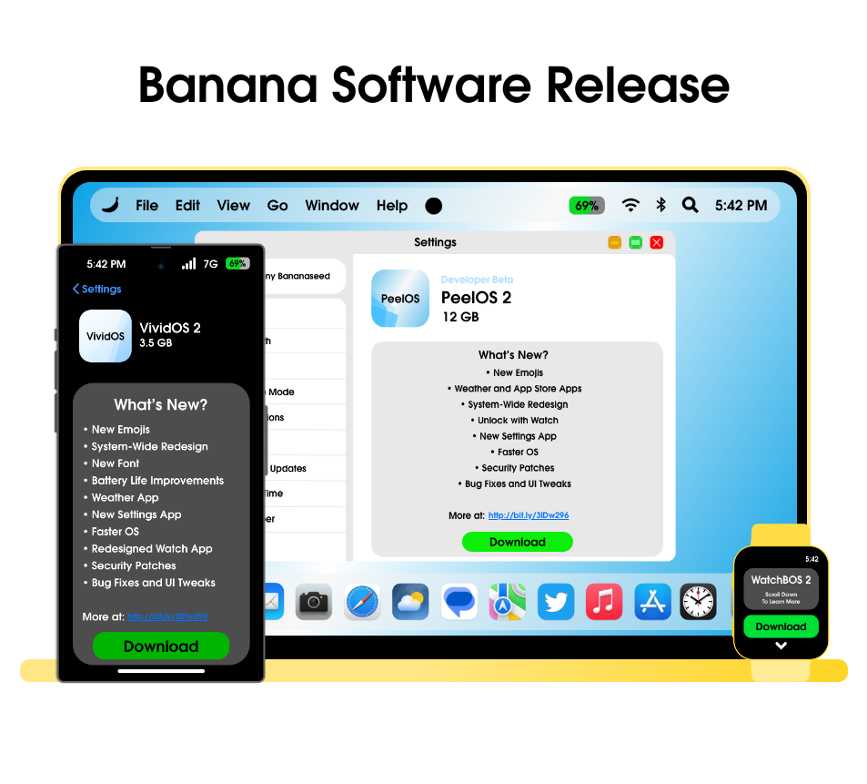 March 27th - Banana's Generation 2 of Software Releases Today, March 27th. Our 2nd Generation of Software includes a bunch of features, including a system-wide redesign.VividOS 2 SupportsBanana Phone (3 Series)Banana Phone (2 Series)Banana Phone (1 S...