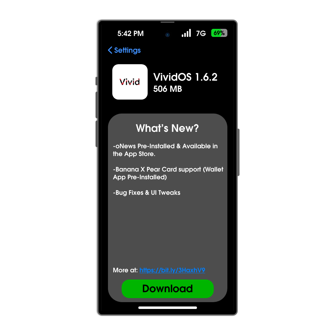 January 16th - Today Banana has released VividOS 1.6.2 to the Public. This update features numerous of changes for VividOS 1.6.1 oNews Pre-Installed & Available in the App Store.Banana X Pear Card support (Wallet App Pre-Installed)Bug Fixes &...