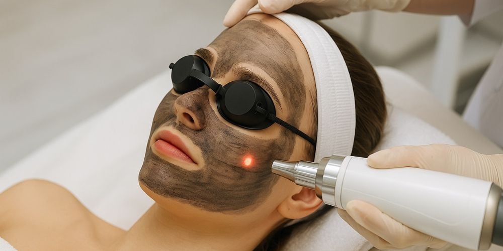 Carbon laser treatment, often called a carbon peel, uses a carbon-based lotion applied to the skin, which penetrates pores and absorbs impurities. A laser is then passed over the treated area, targeting the carbon particles and gently removing dead skin cells, excess oil, and debris. This process stimulates collagen production, improves skin tone, and enhances texture, leaving the skin smoother and more radiant.