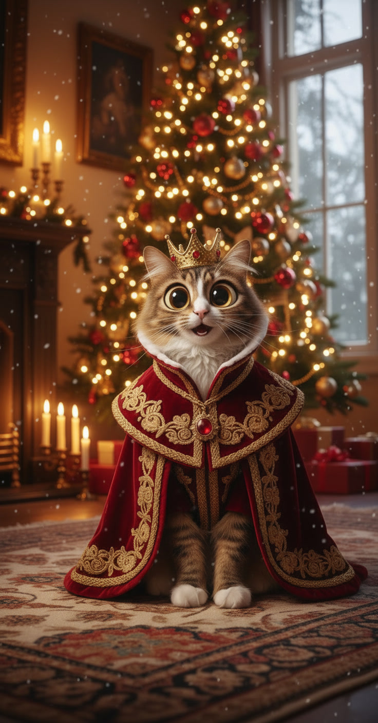 “My cat looks like Christmas royalty 😂👑”