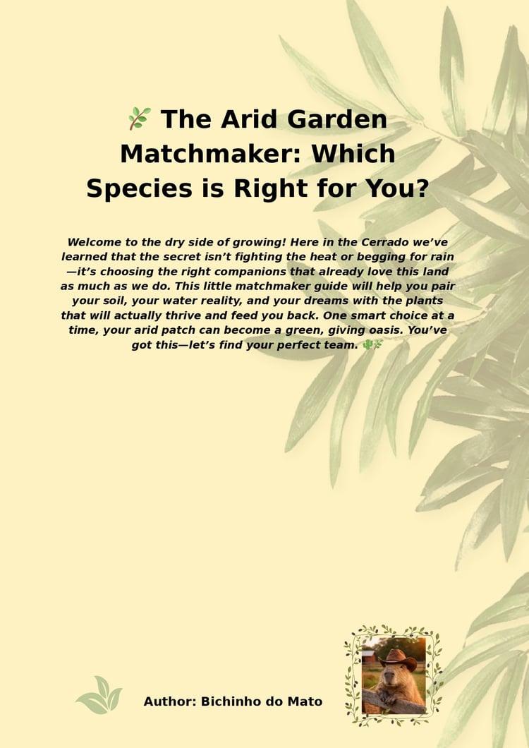 No fancy titles — just a bush critter who figured out how to grow real food when the heat is brutal: açaí that refuses to miss the jungle, moringa that shrugs off drought, papaya that ripens anyway, and legumes that never whine.