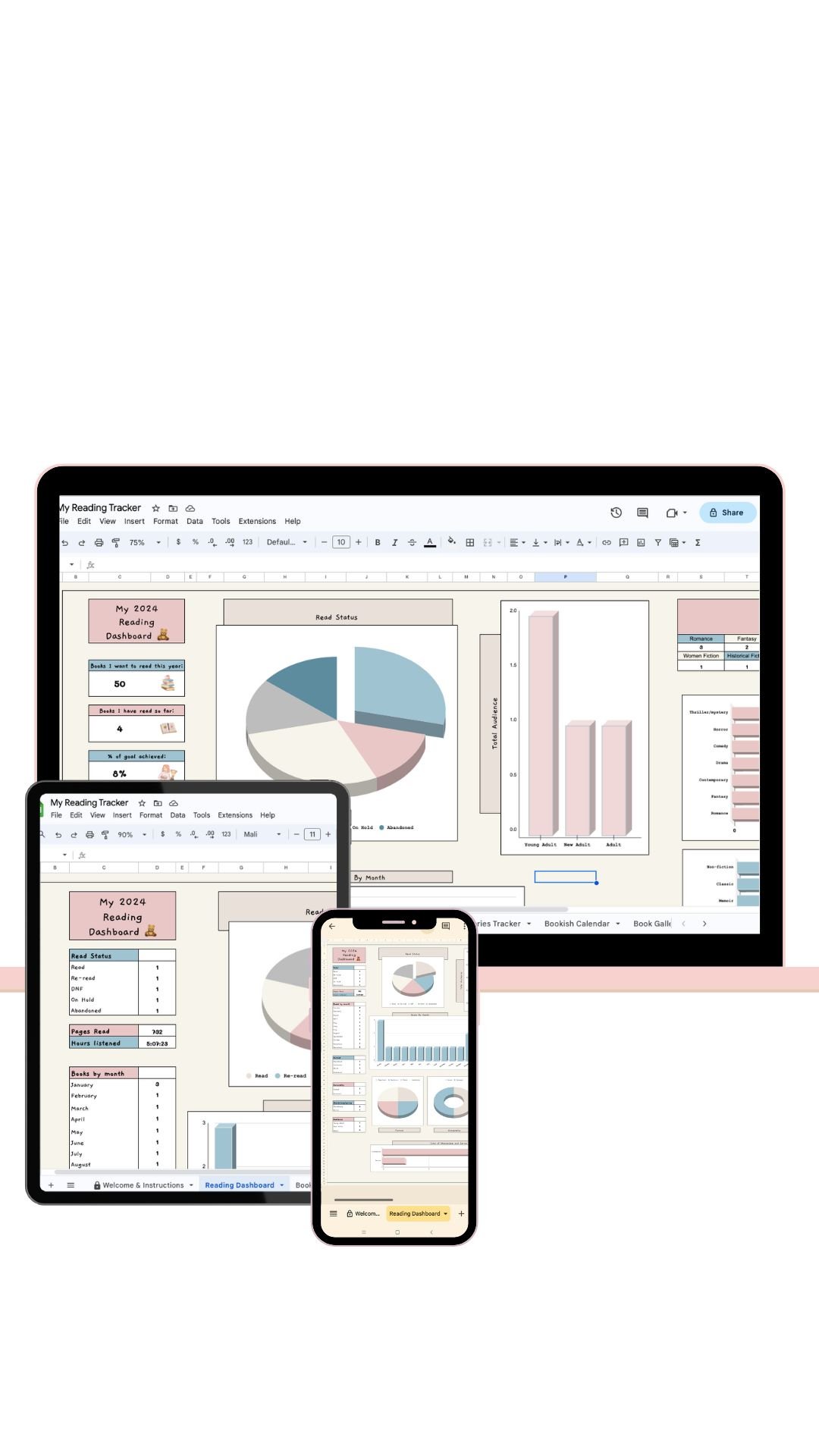 Say goodbye to scattered notes and messy lists. Our spreadsheet offers a clean and aesthetic layout, allowing you to effortlessly track your reading progress!