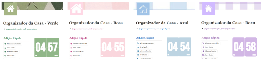 O Organizador da Casa e o Planner Financeiro se completam de um jeito perfeito. Afinal, muita coisa do dia a dia como mercado, limpeza, refeições, pequenas compras, acaba impactando o orçamento sem a gente perceber. Quando você organiza a rotina e os gastos no mesmo ecossistema, tudo começa a ficar mais claro e previsível.