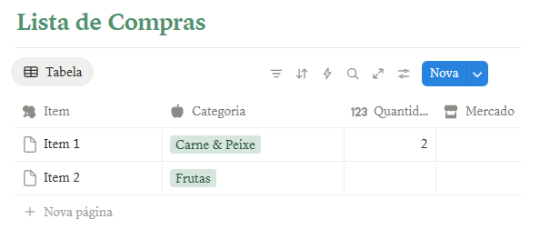 A Lista de Compras é, na minha opinião, um dos recursos mais práticos de todo o Organizador da Casa. Ela funciona de forma integrada com o botão de adição rápida: sempre que você cadastrar um item ali, ele aparece automaticamente na tabela principal.