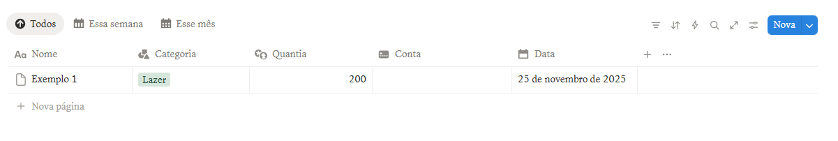 O controle de gastos é a seção que te ajuda a acompanhar seu dinheiro mês a mês. Ele funciona como uma tabela organizada por categorias como contas, aluguel, mercado e outras. Você define o orçamento para cada uma, registra o que já gastou e vê automaticamente quanto ainda resta. Assim fica fácil manter o equilíbrio financeiro, identificar deslizes e ajustar seus hábitos.