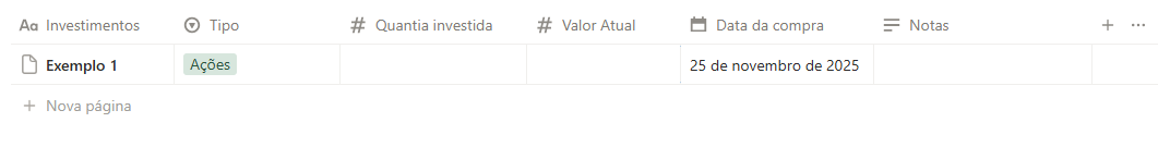 A seção de investimentos deixa acompanhar suas aplicações de forma prática e visual. Você registra a data de compra, a quantia, o tipo de investimento e o valor atual, tudo em uma tabela fácil de usar. Assim, dá para ver de forma clara como seu dinheiro está crescendo e acompanhar a evolução de cada investimento sem complicação.