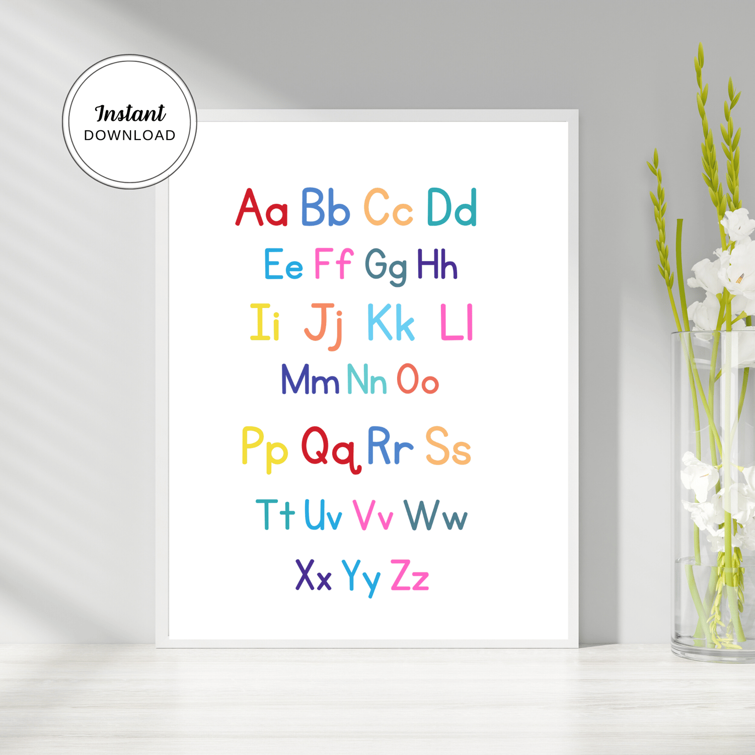 Alphabet Chart, Educational Poster For Kids, Alphabet Printable Wall Art, Nursery Print, ABC Chart, Kids Room Decor, Instant Download