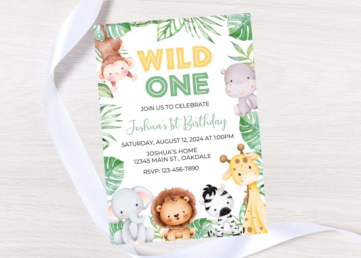 Editable safari animal birthday invitation template- Jungle animal invitation-baby shower invitation-instant download