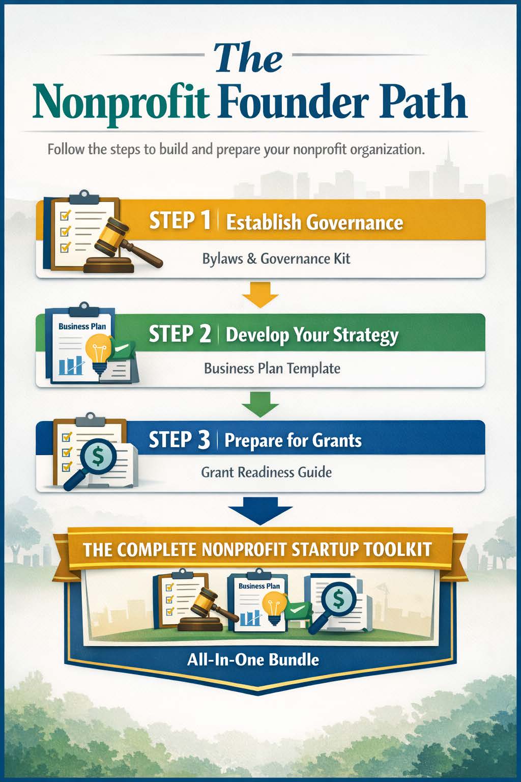 This bundle includes all three resources in one complete system designed to help founders structure, plan, and prepare their nonprofit organizations.