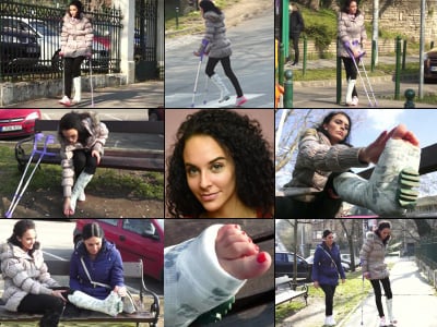 Minnie SLWC Crutching Through the Park with Casted Foot Play (HD 1920 X 1080)