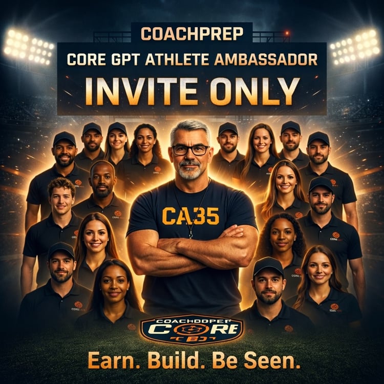 Welcome to the CORE GPT Ambassador Program — a movement powered by CoachDPrep CORE GPT designed to help elite high school athletes become leaders, creators, and difference-makers while building their own recruiting momentum.