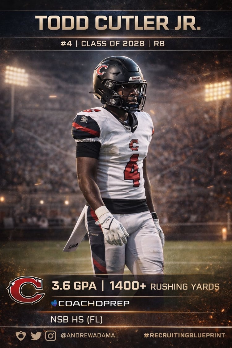 📍 Daytona Beach ➡️ Next-Level Backfields 📈 1400+ yards ➡️ 2000-yard potential 🎓 3.6 GPA ➡️ D1-ready transcript