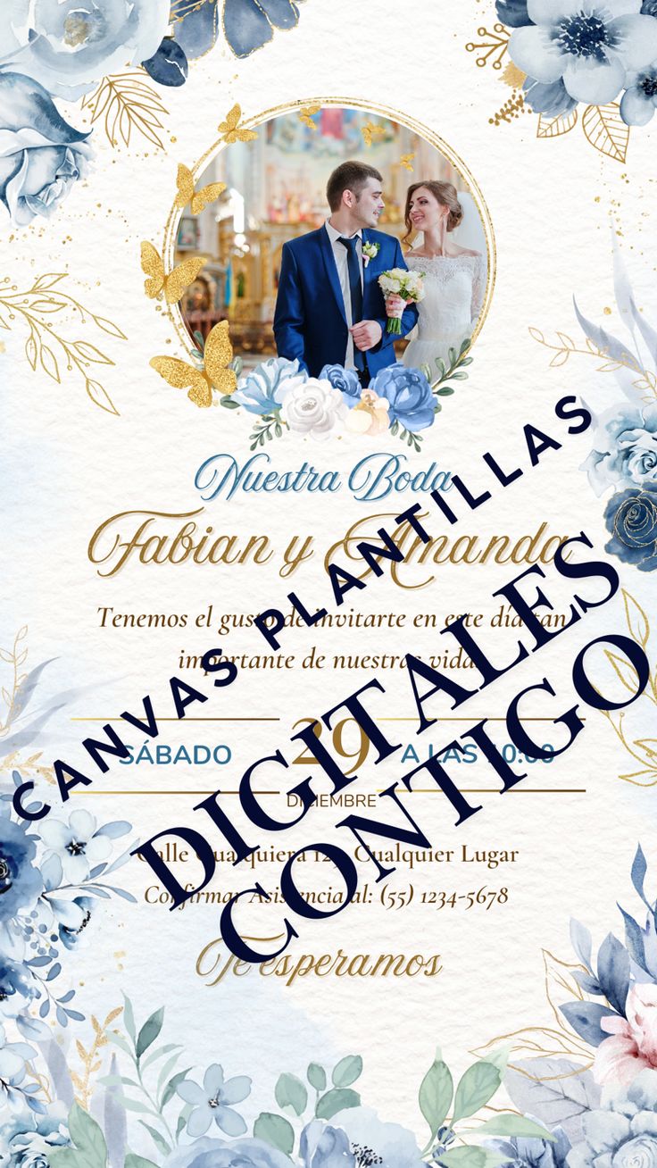 💍✨ Video para Dispositivos Móviles Invitación de Boda Floral Elegante Azul y Dorado 🌿💙