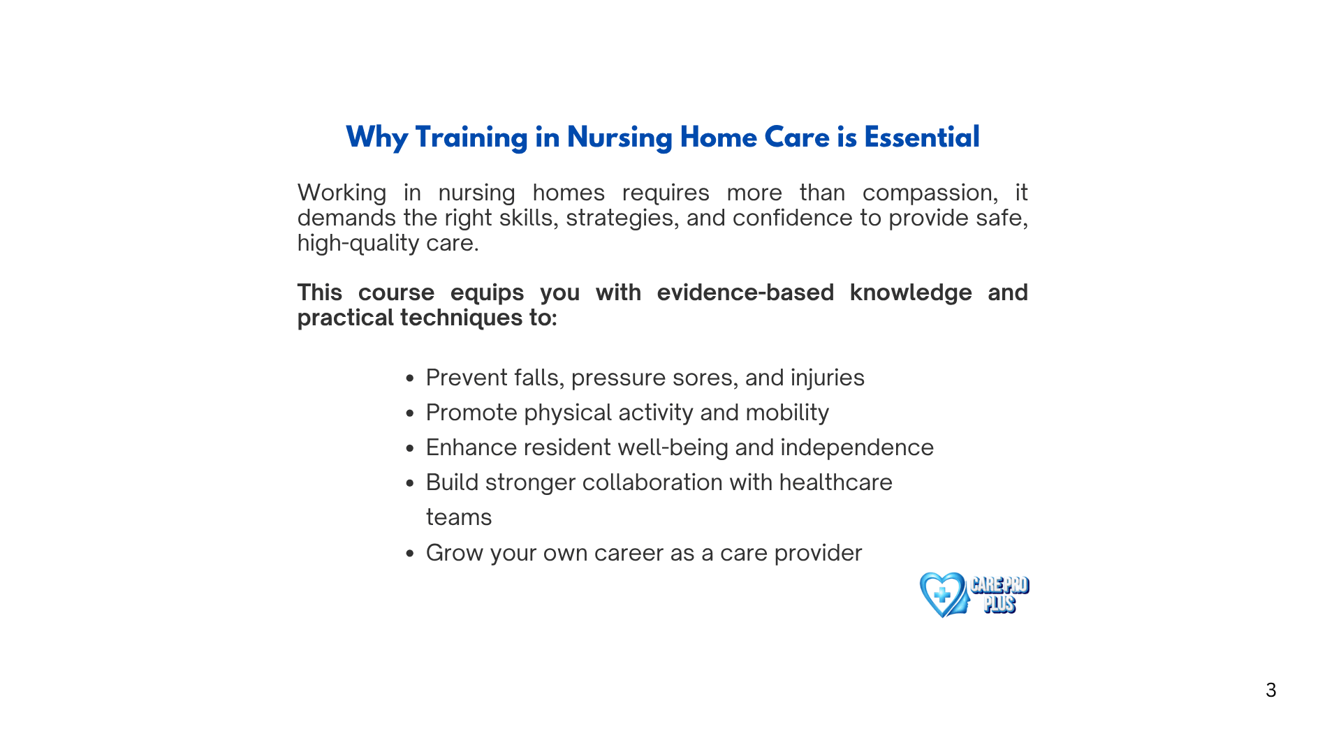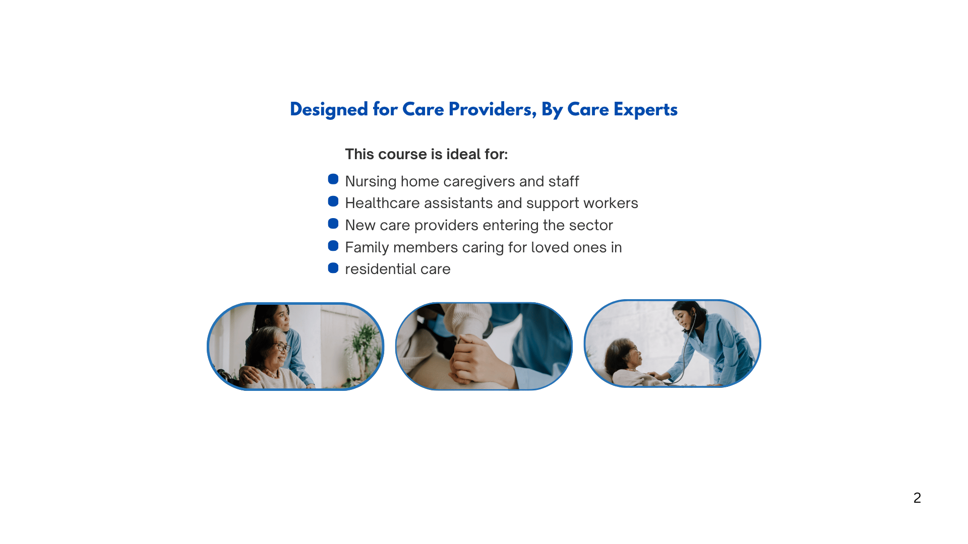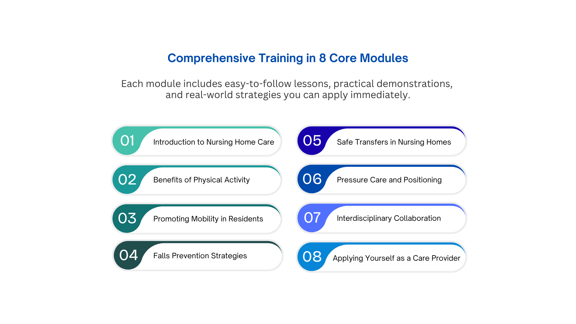 An online training course designed for caregivers and healthcare staff to improve resident safety, quality of life, and professional skills.