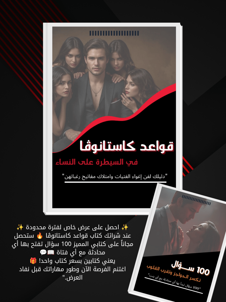 📘 قواعد كاستانوڤا – تتعلم فيه أسرار التعامل مع الأنثى، وكيف تجعلها تنجذب لك بذكاء نفسي.