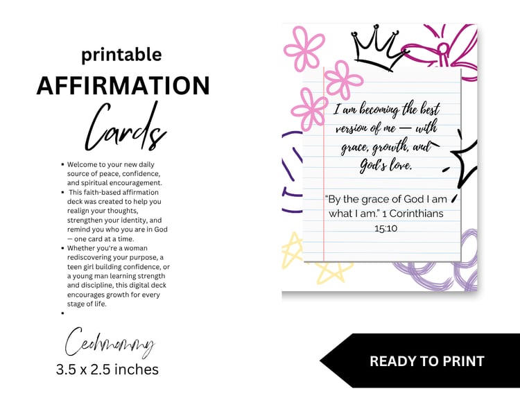 I create faith-based affirmation cards, printables, and tools designed to help women, men, and kids grow into the best version of who God created them to be.