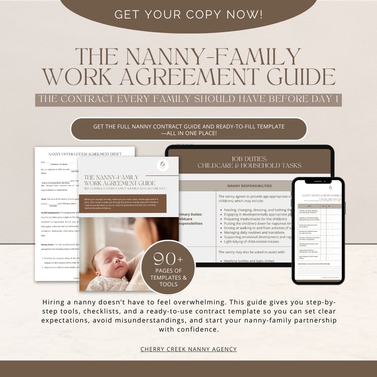 Covers everything from hours to holidays, overtime to house rules. Includes a fillable template so you and your nanny start with clarity and mutual accountability.