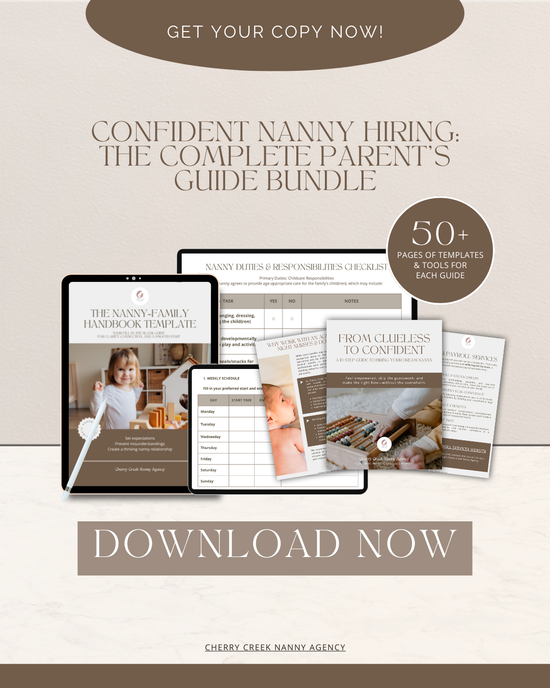 That’s why I created the Complete Parent’s Guide Bundle: a set of eight in-depth guides packed with tools, templates, and real-world insights to help families hire, manage, and thrive with their nanny.