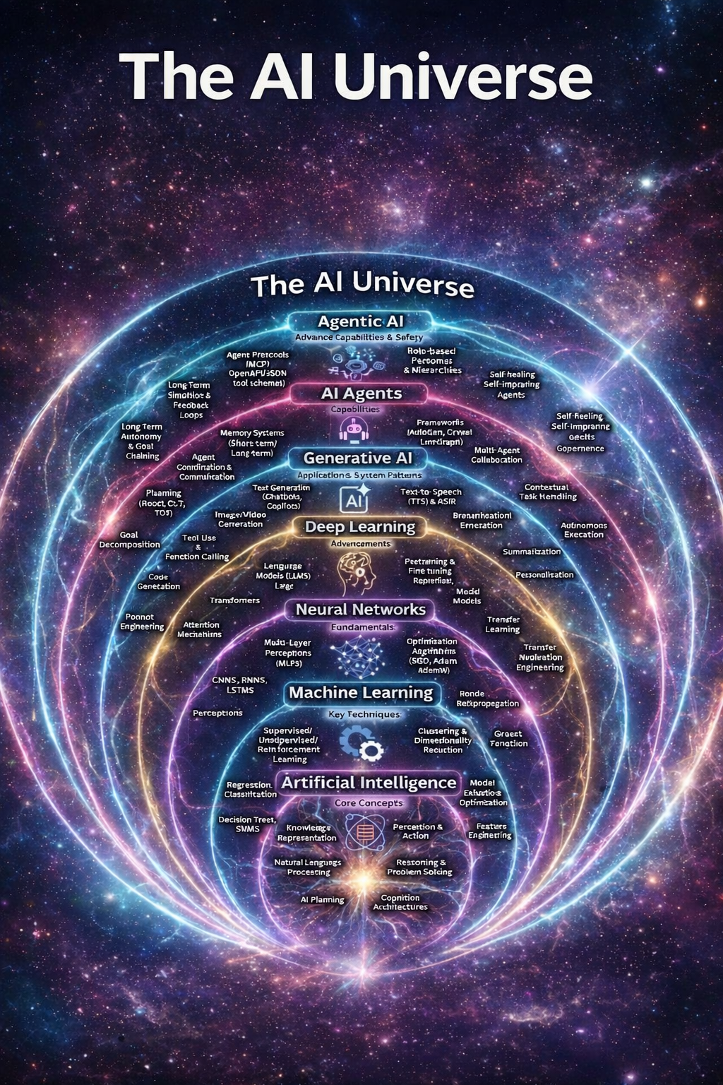 But artificial intelligence is not a single technology. It is a layered ecosystem of machine learning, neural networks, deep learning, generative models, and emerging AI agents — each building on the other to create systems that can learn, adapt, and collaborate with humans. Understanding these layers is quickly becoming one of the most valuable skills of the decade.