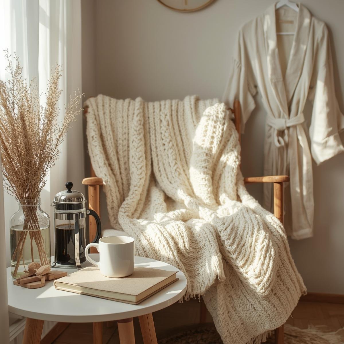 Home products that fit this aesthetic are practical, neutral, and timeless. Popular choices include throw blankets, ceramic mugs, woven baskets, and understated decor.