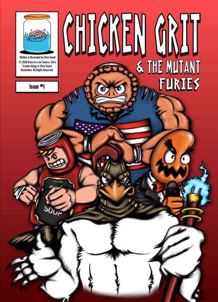 Hi, I’m Chris Guest — illustrator, writer, and the creator of Chicken Grit & The Mutant Furies. I make my comics in the spare minutes around work and family life, determined to show my sons that it’s never too late to chase a dream.