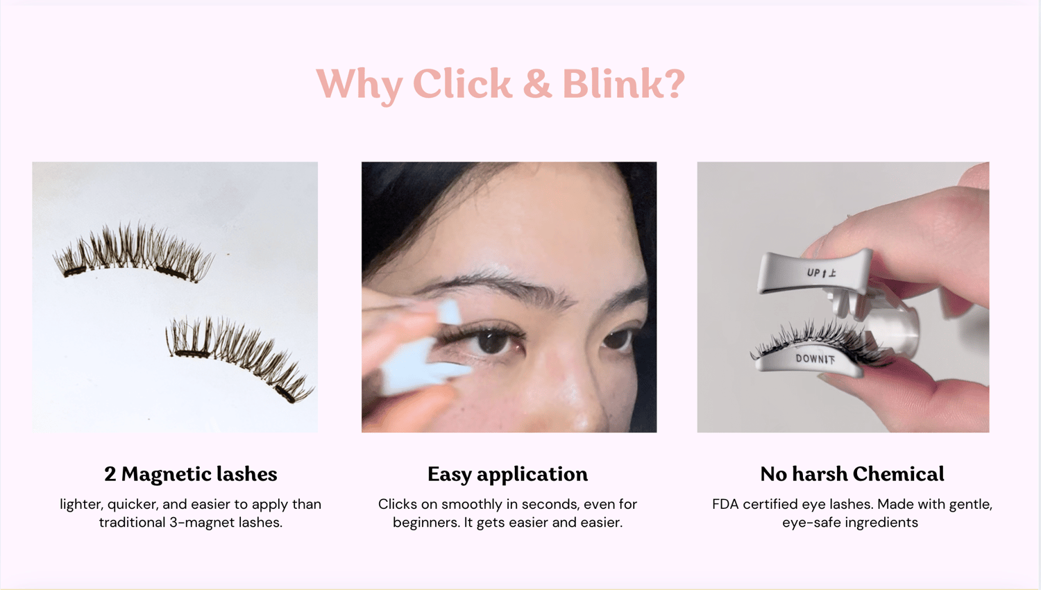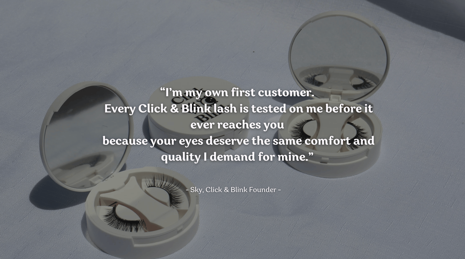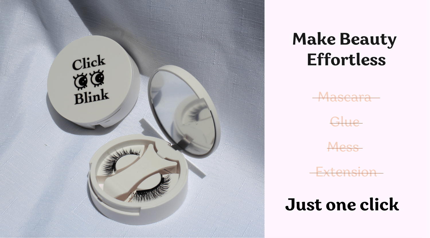 Click & Blink was born from a fight for freedom — freedom from clumpy mascara, harsh lash glue, and beauty routines that hurt more than they help. After countless setbacks, Sky finally created the perfect magnetic lashes. Now she’s on a mission to free girls across New Zealand with lashes that click on in seconds and empower every blink. Beauty shouldn’t sting.