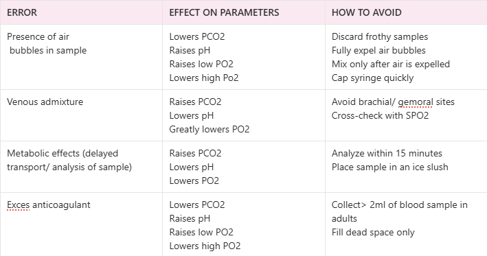 Preanalytical errors in ABG sampling