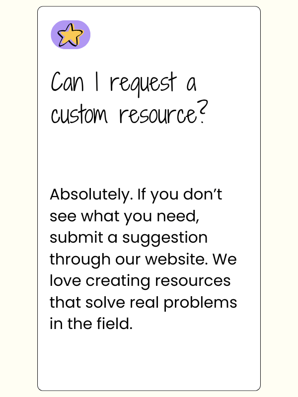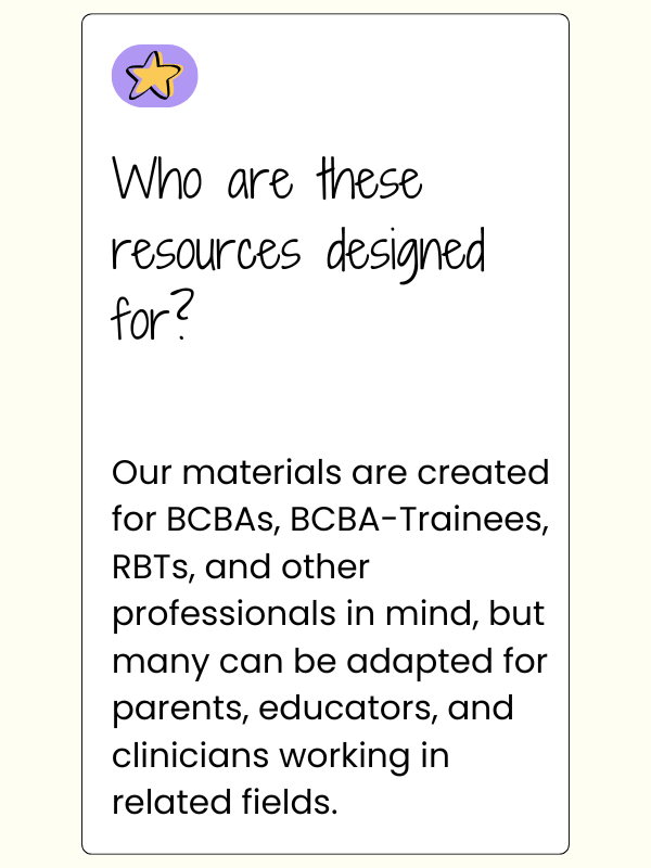 Yes, we love collaborating! If you’re a BCBA, RBT, or related professional with ideas, feel free to reach out.