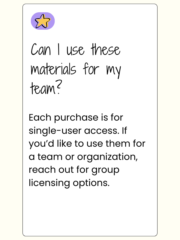 Each purchase is licensed for individual use. If your team needs access, reach out for group or agency licensing.