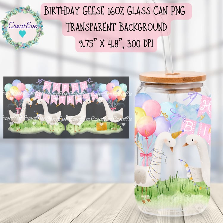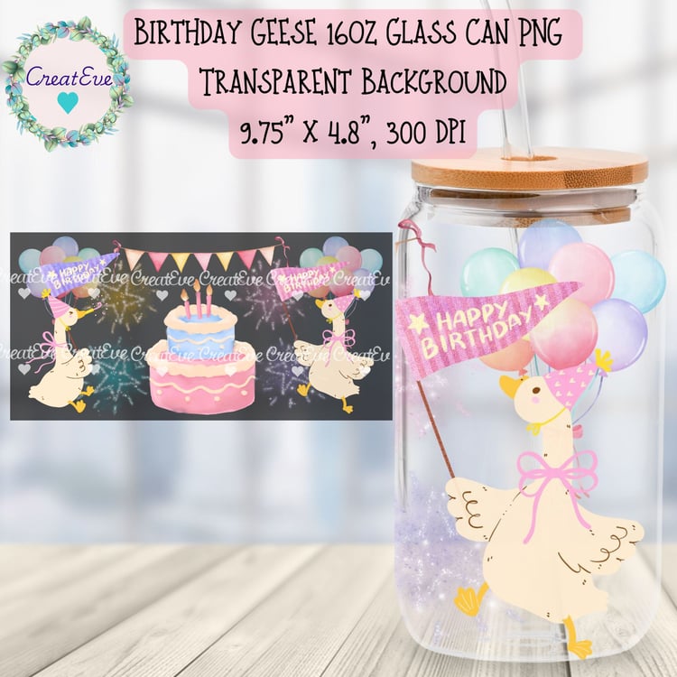 Birthday Geese 16oz Glass Can PNG, 300dpi, 9.75" x 4.8"