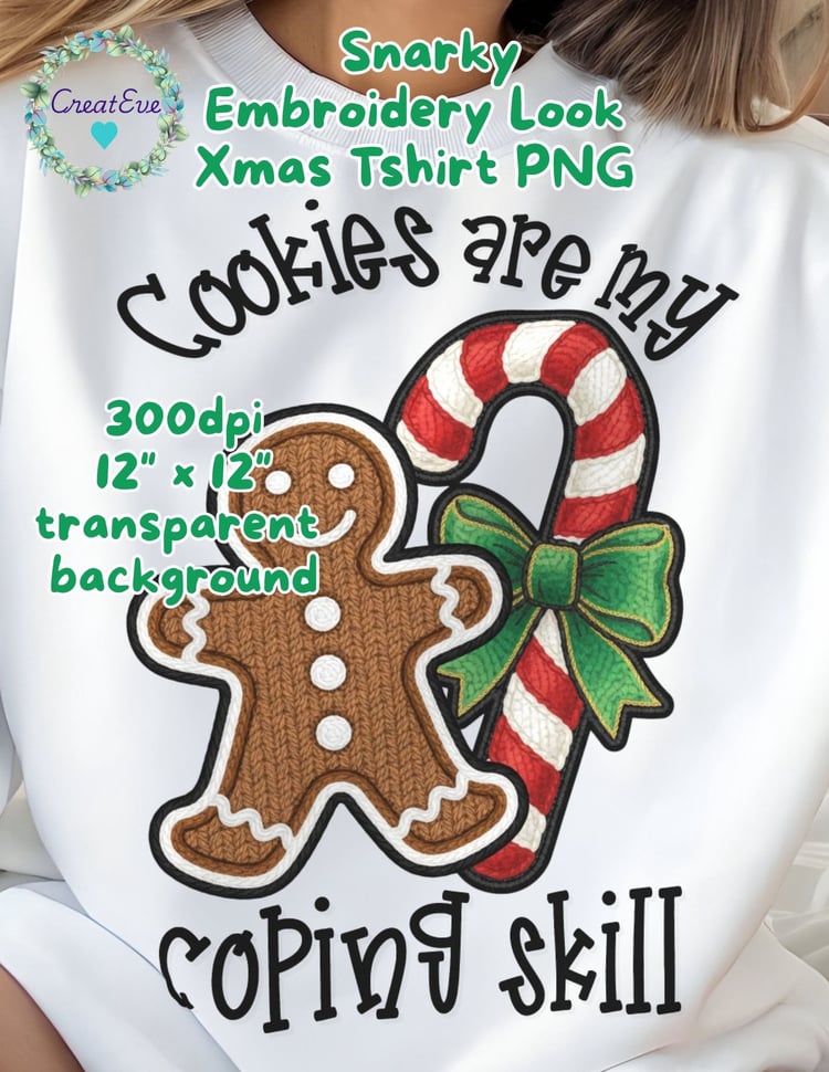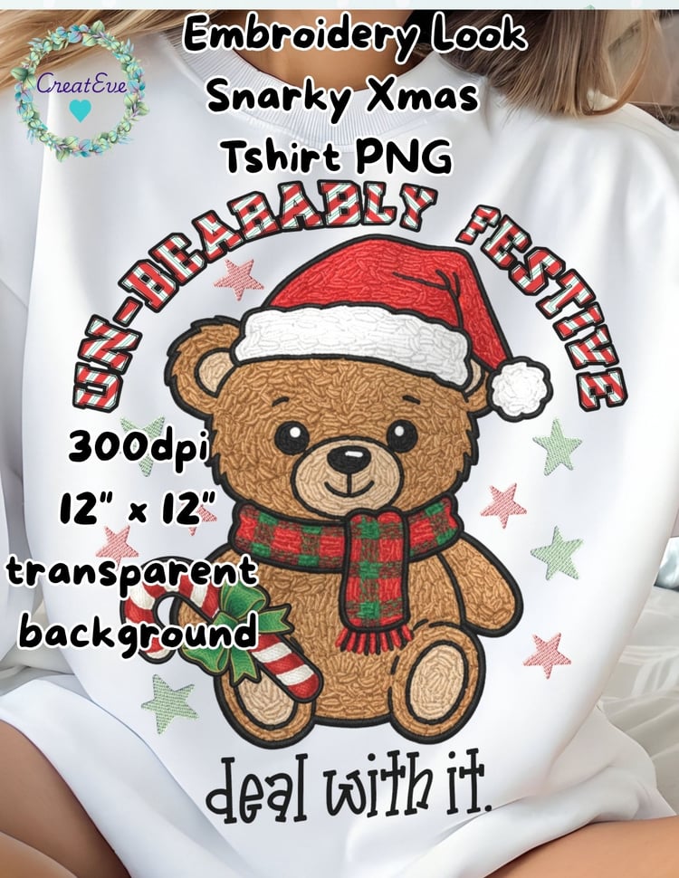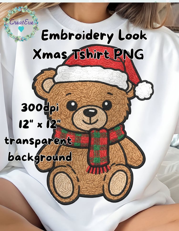 Embroidery XmasT-shirt Png, 300dpi, 12" x 12", Transparent Background