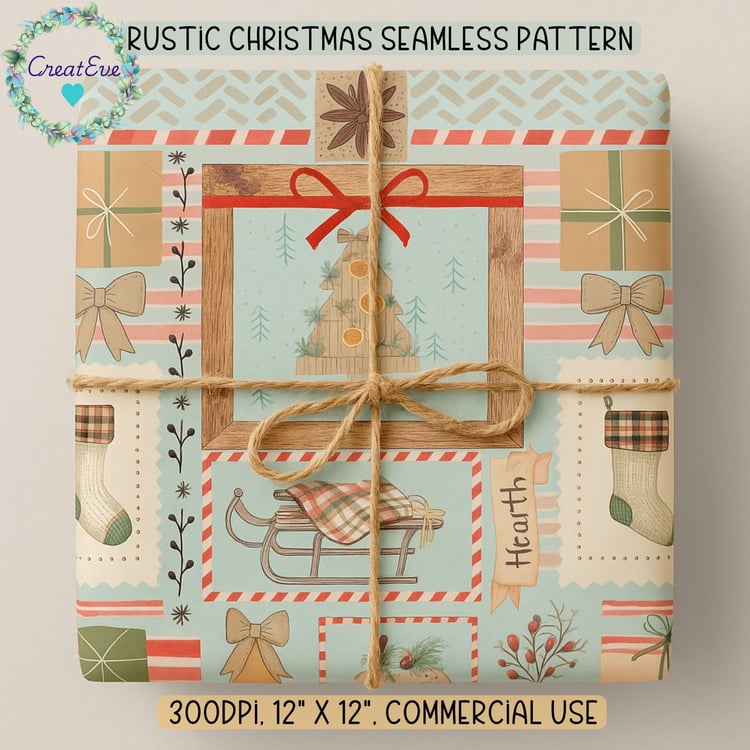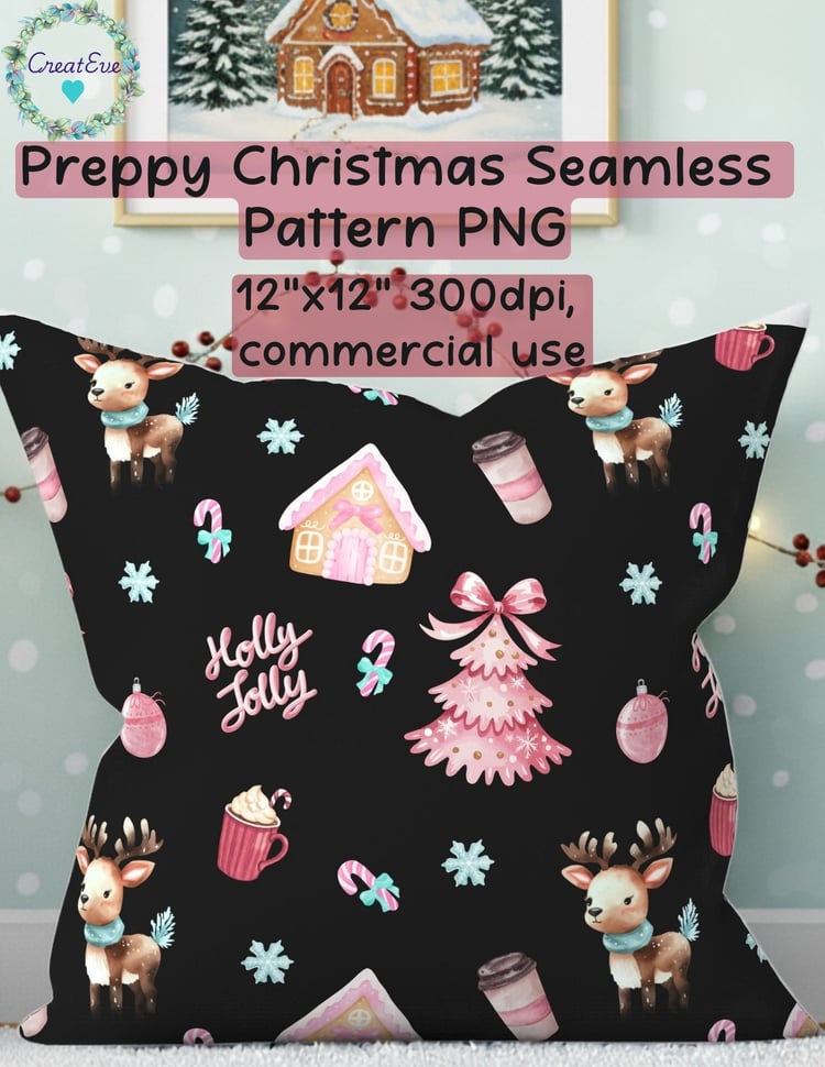 Preppy Christmas Seamless Pattern, Commercial Use, 300dpi, 12" x 12"