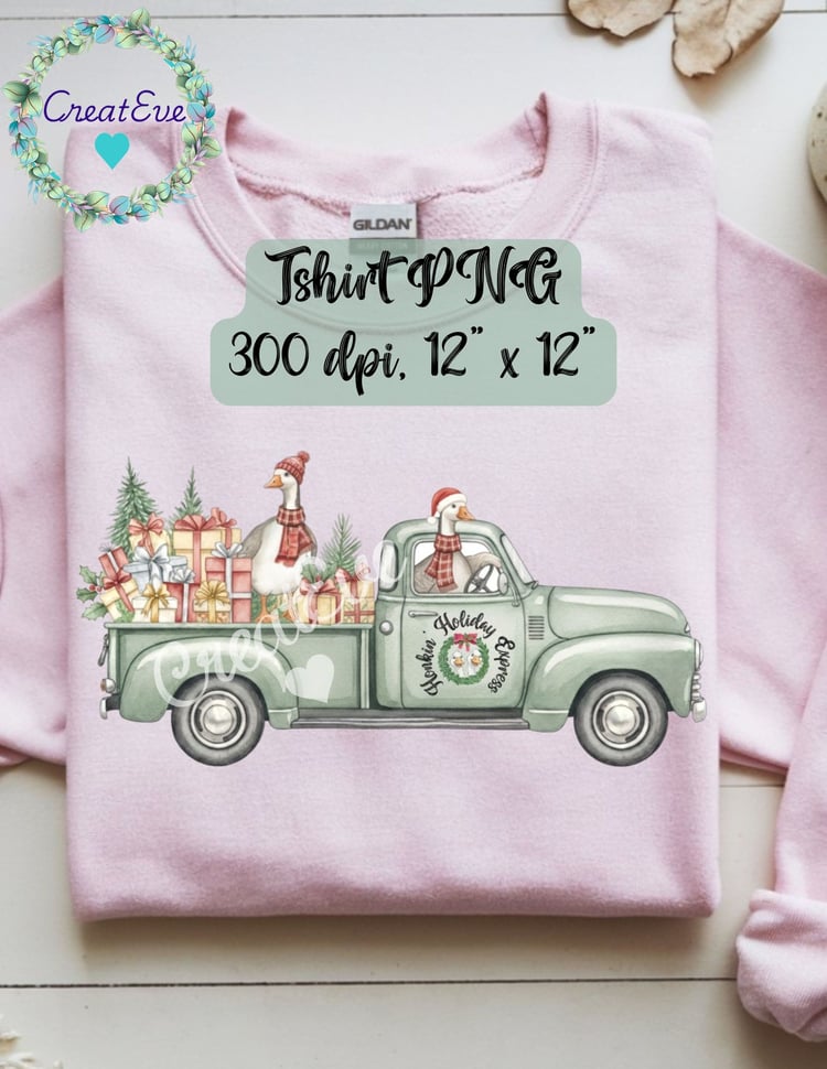 Christmas Geese in a Vintage Truck Tshirt PNG 300dpi, 12"x12"