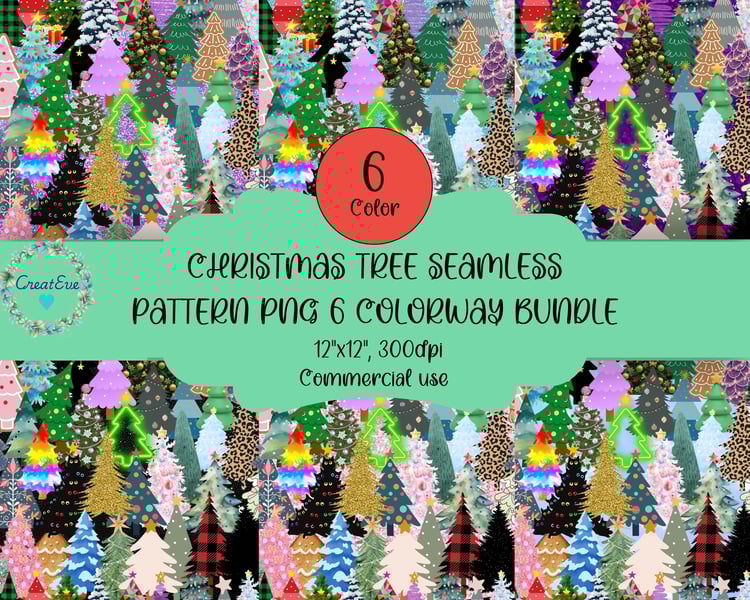 Christmas Tree Seamless Pattern PNG, 300dpi, 12" x 12", Commercial Use