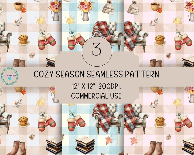Cozy Season 8 Colorway Seamless Pattern PNG Bundle, 300dpi, 12" x 12"