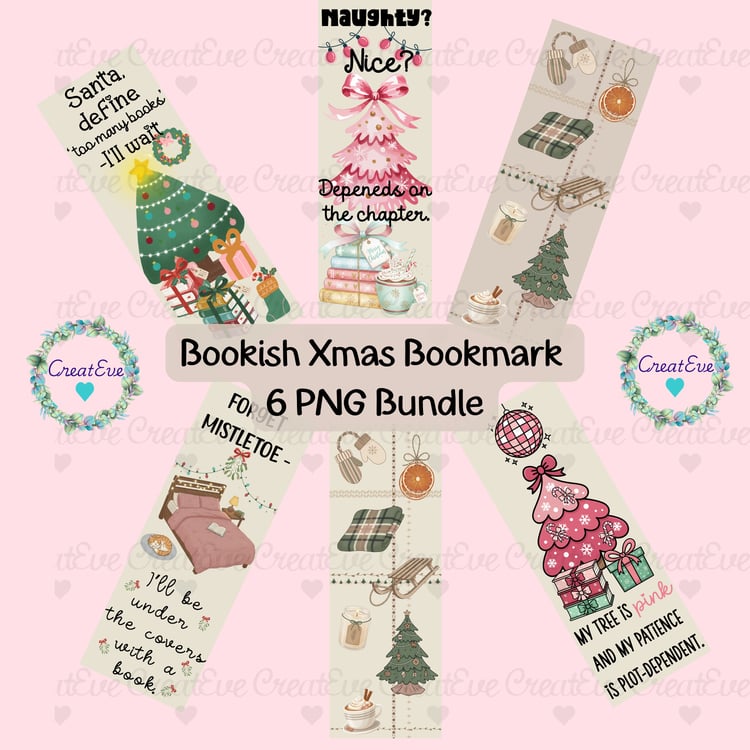 Snarky Bookish Christmas 6 Bookmark PNG Bundle, 2.5" x 7", 300dpi