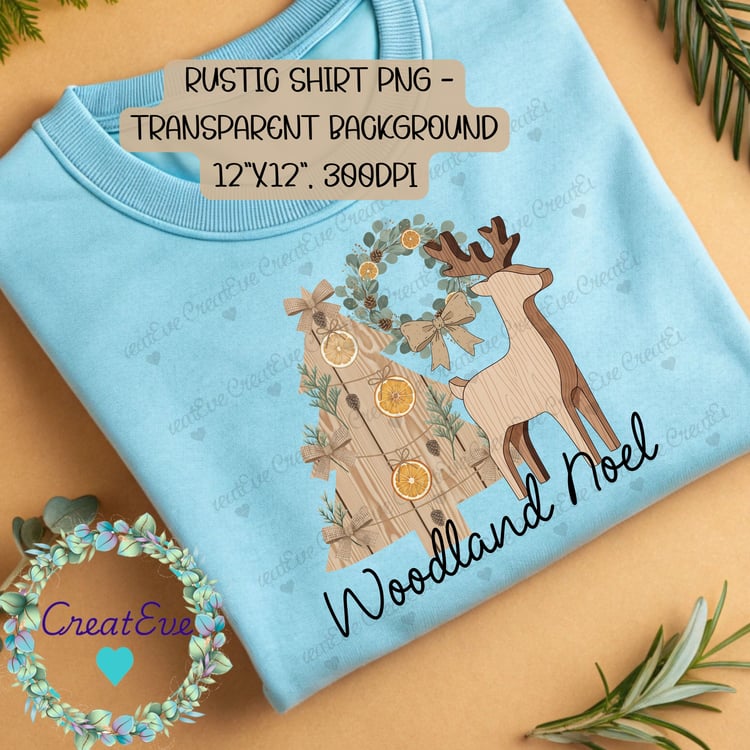 Rustic Christmas Shirt PNG, Transparent Background, 300dpi, 12" x 12"