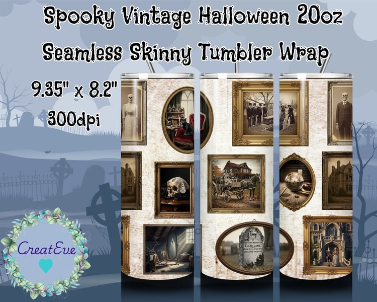 Spooky Vintage Halloween 20oz Skinny Tumbler Wrap PNG