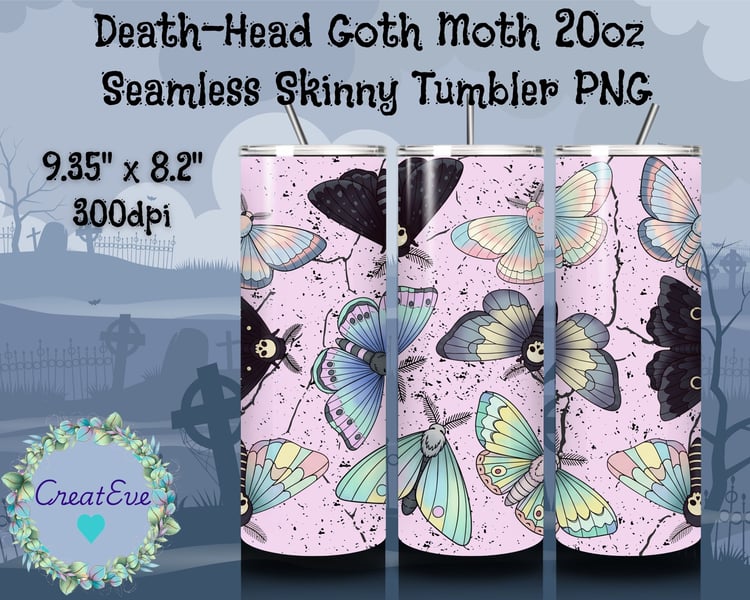 Goth Moth Preppy 20oz Skinny Tumbler PNG Wrap