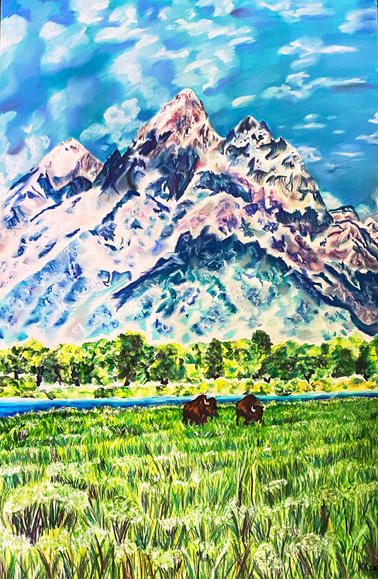 Her passion for depicting nature arose from witnessing the wild bison in West Yellowstone. Their unique appearance captured her imagination, inspiring her to convey the beauty of the natural world through her own artistic perspective.