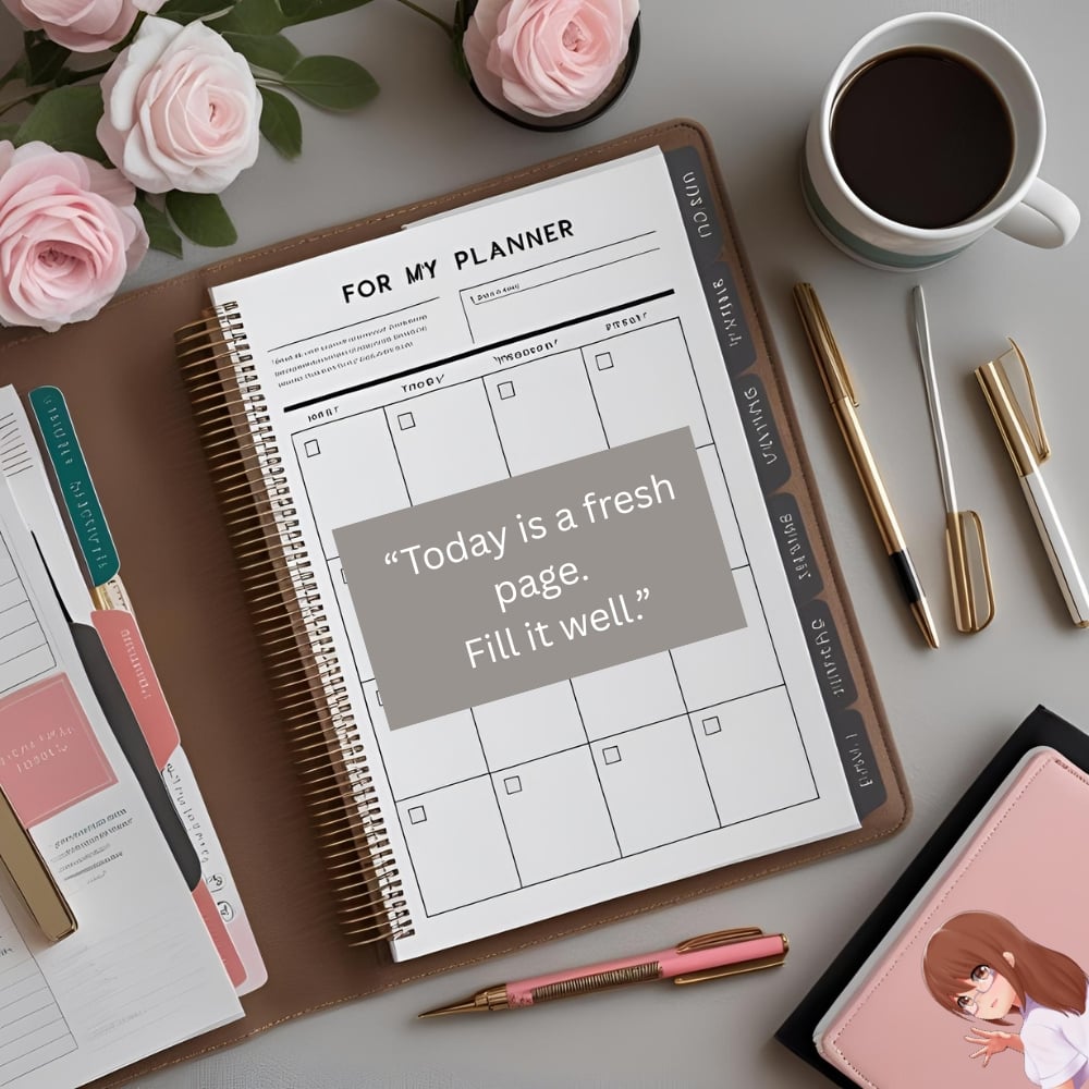 Each page blends planning with self-care—daily layouts, to-do lists, and wellness prompts that bring calm to your routine without feeling overwhelming.