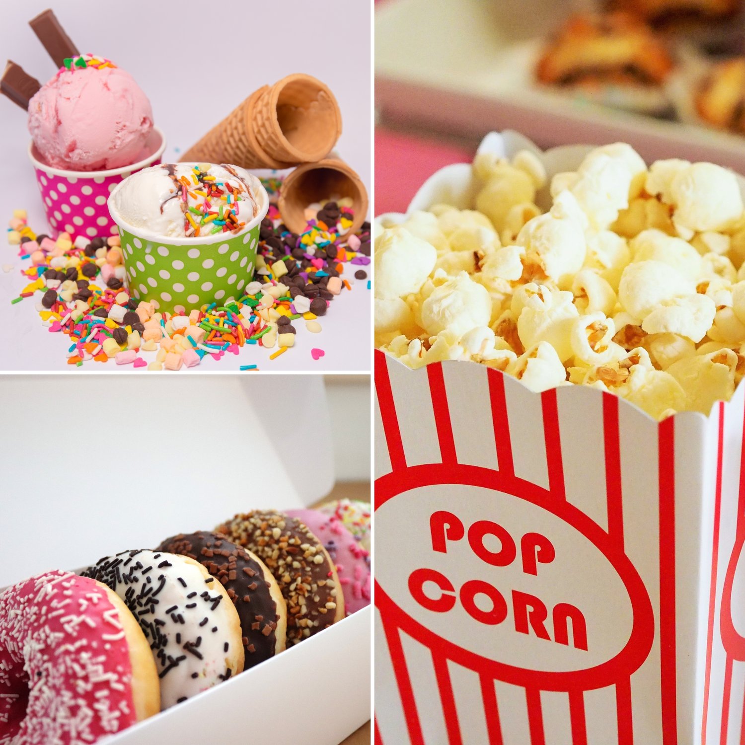 - Cakes, cupcakes, sundaes, pies, lollipops, macarons, and more